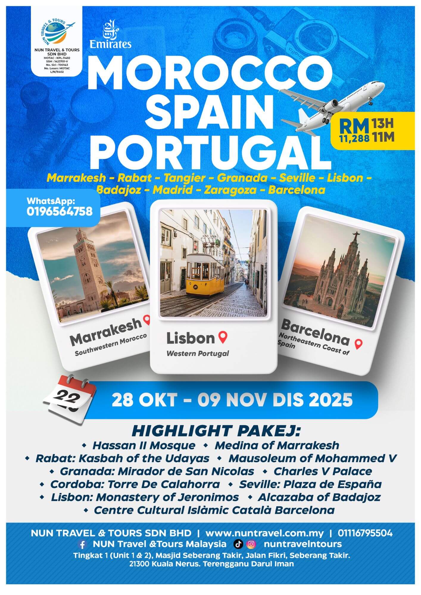 Morocco, Spain, and Portugal runs from October 28 to November 9, 2025. It’s a comprehensive journey that combines cultural exploration, historical sites, and shopping.