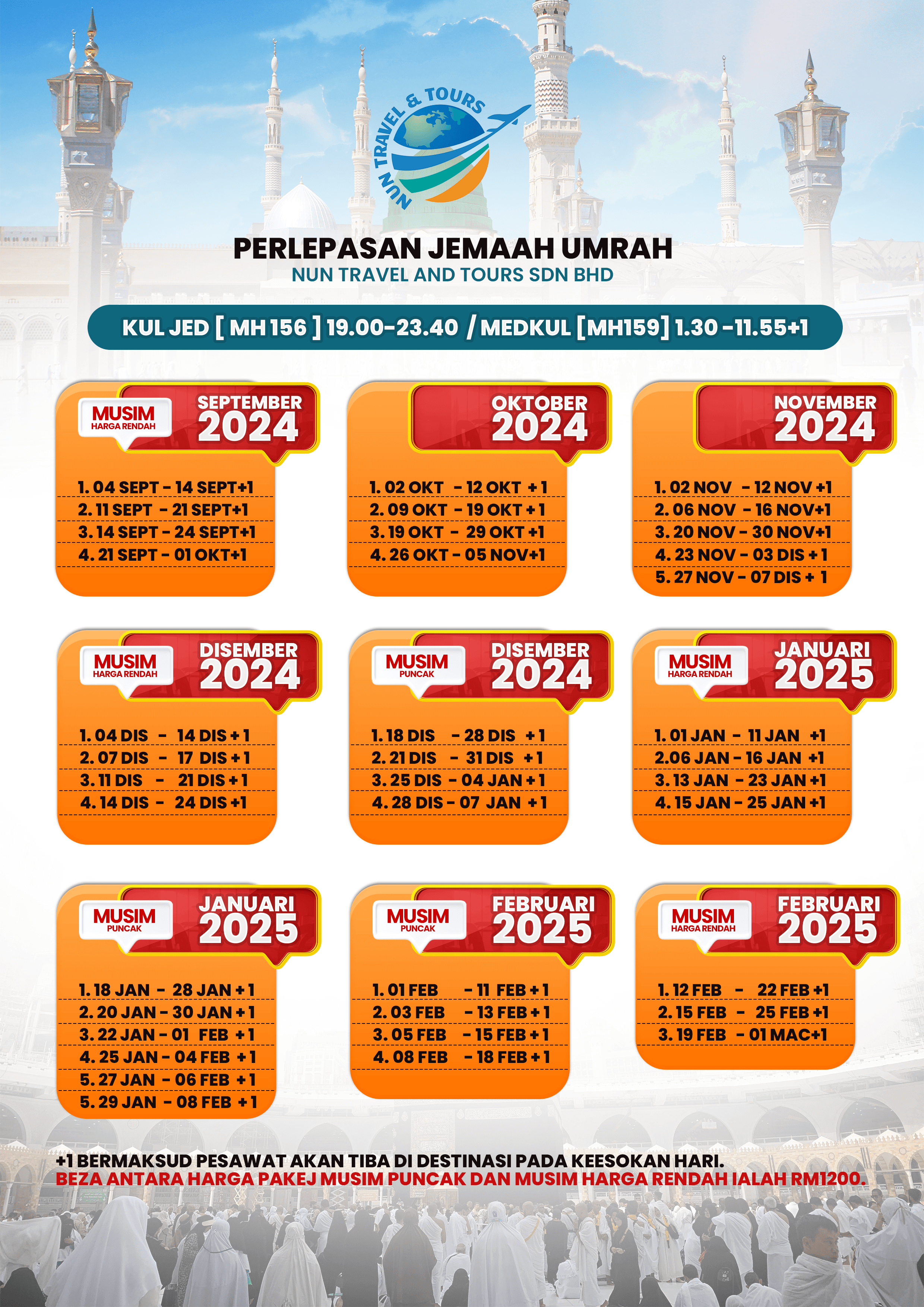 Tambahan RM300 sehari jika penerbangan lebih dari jadual asal Pakej.
