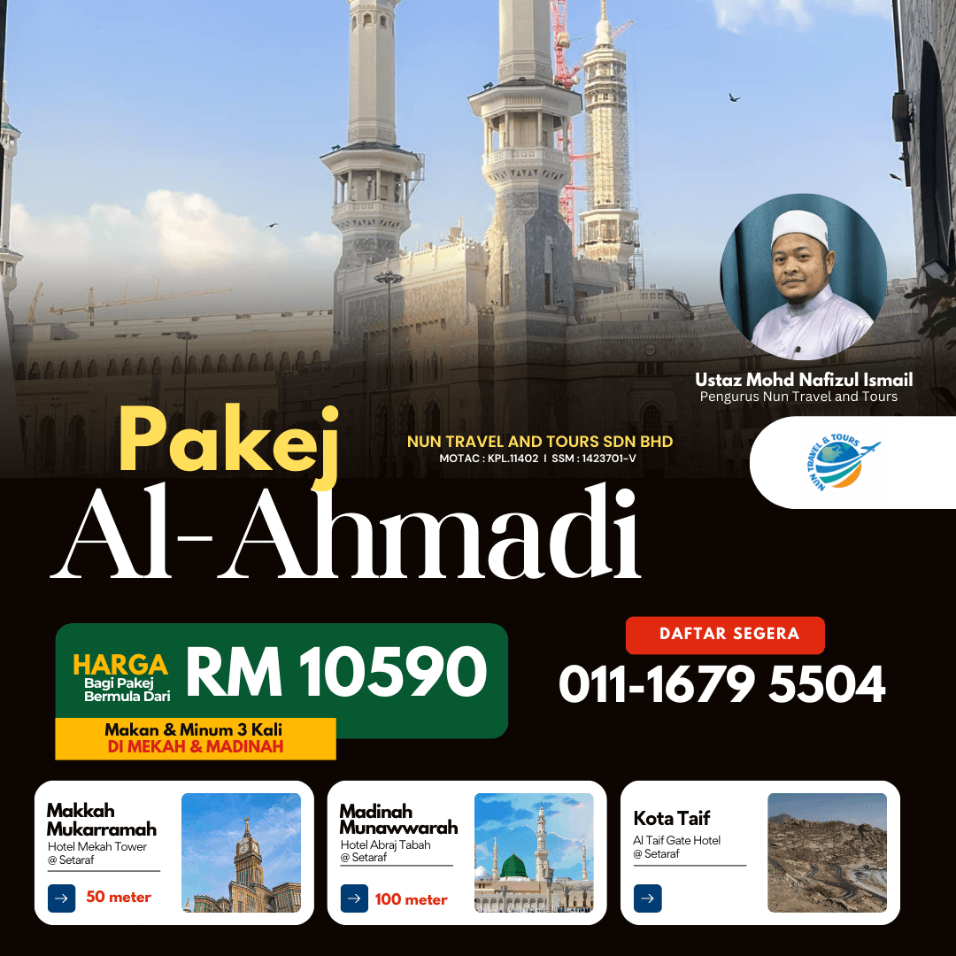 Nun Travel and Tours mengajak anda merasai pengalaman Umrah yang tak ternilai – Kami di Nun Travel and Tours memahami bahawa menunaikan umrah merupakan impian setiap umat Islam yang ingin mendekatkan diri kepada Pencipta. Dengan itu, kami dengan bangganya mempersembahkan Pakej Umrah yang bukan sahaja berbaloi tetapi juga memenuhi semua keperluan anda dari segi keselesaan dan keperluan rohani.