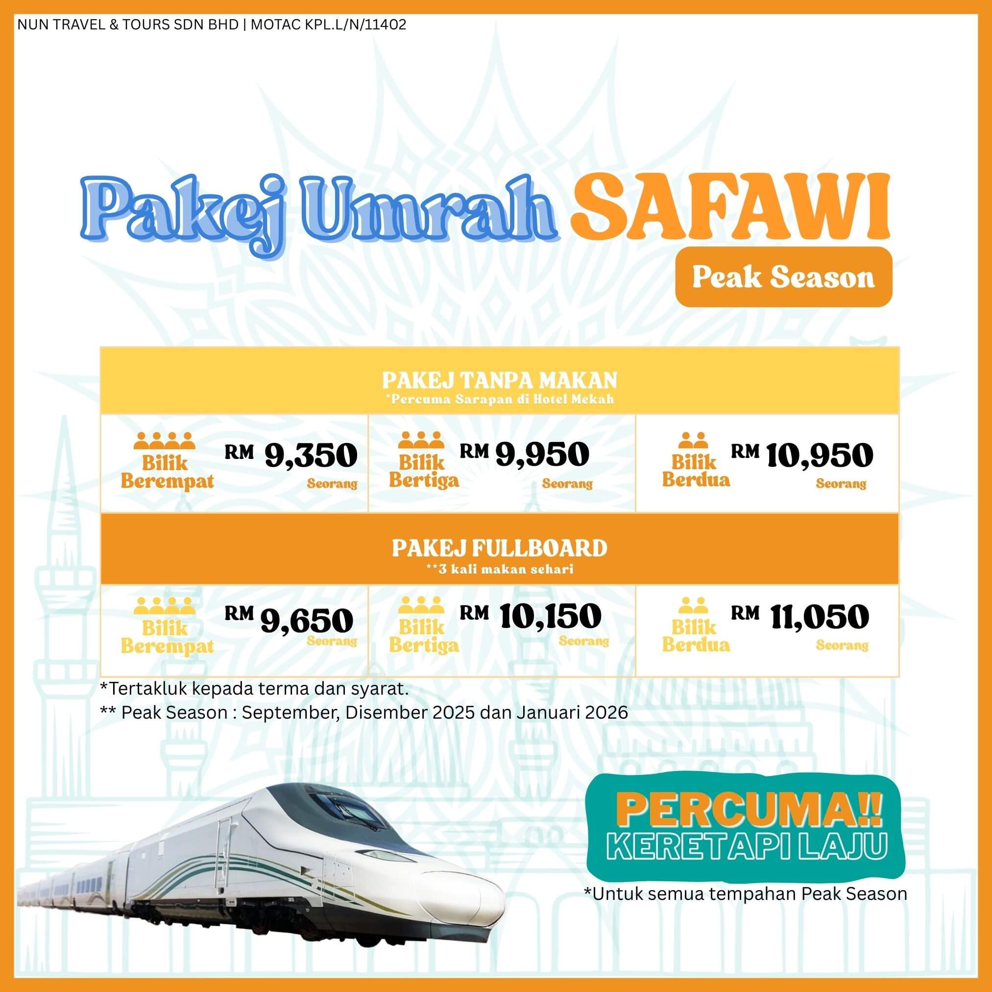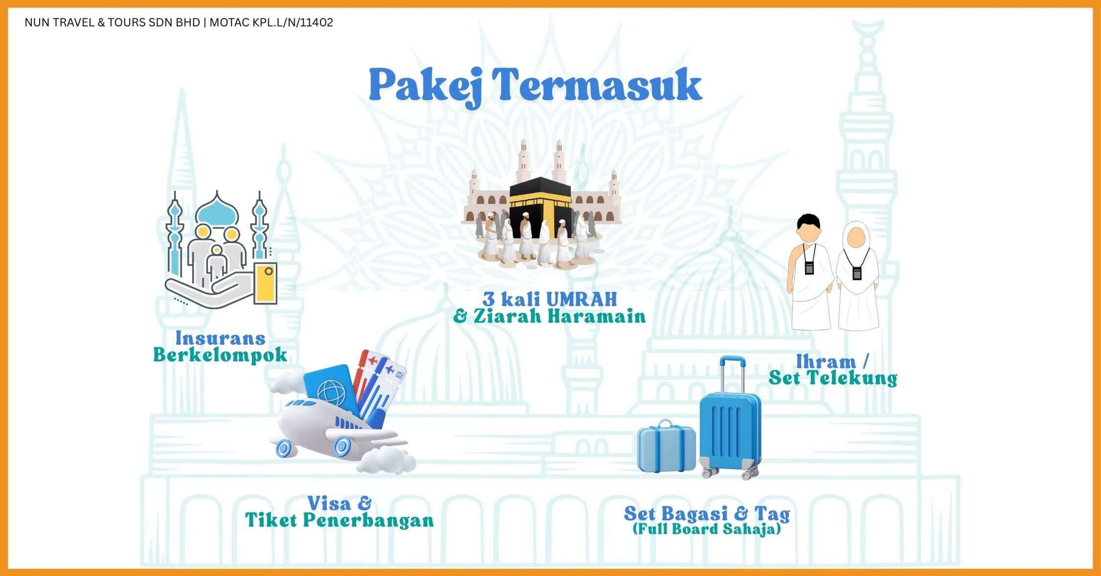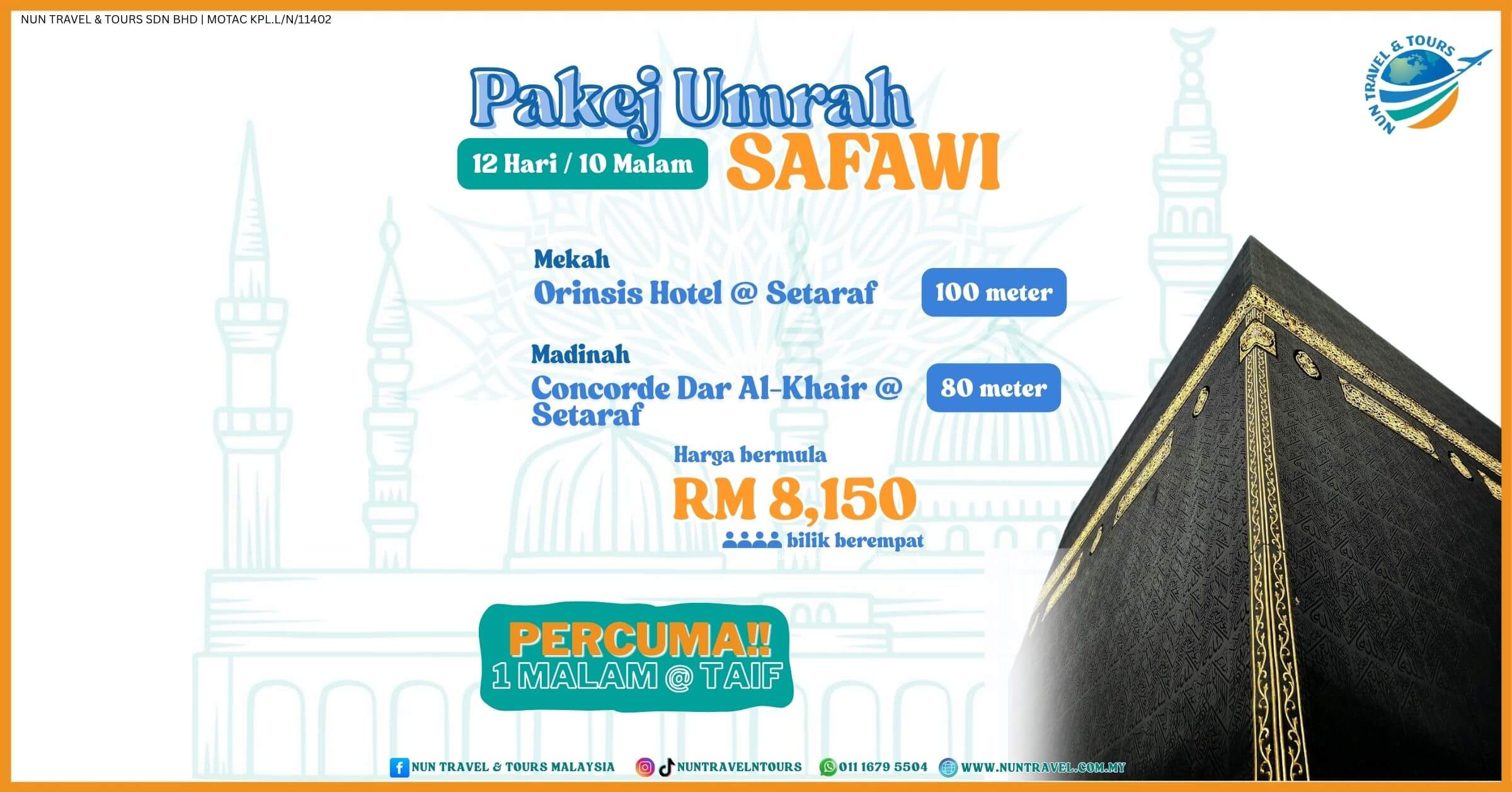 Nun Travel and Tours mengajak anda merasai pengalaman Umrah yang tak ternilai – Kami di Nun Travel and Tours memahami bahawa menunaikan umrah merupakan impian setiap umat Islam yang ingin mendekatkan diri kepada Pencipta. Dengan itu, kami dengan bangganya mempersembahkan Pakej Umrah yang bukan sahaja berbaloi tetapi juga memenuhi semua keperluan anda dari segi keselesaan dan keperluan rohani.