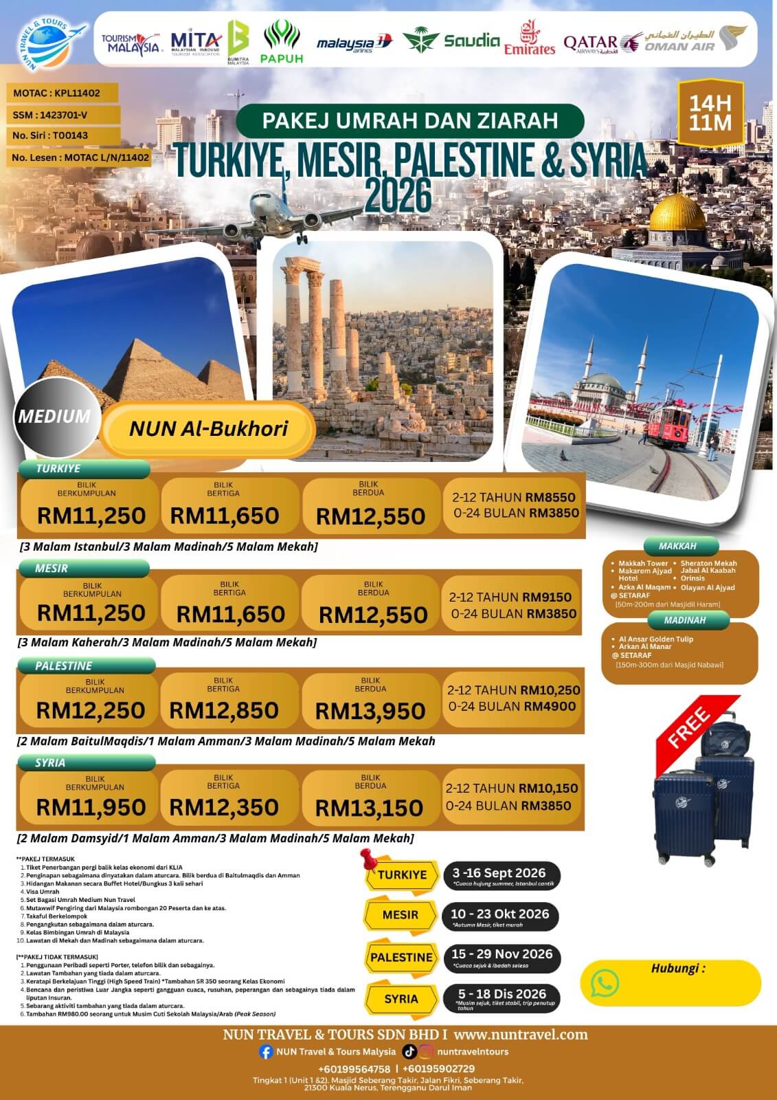 Pakej umrah dan ziarah : turkiye, mesir, palestine & syria